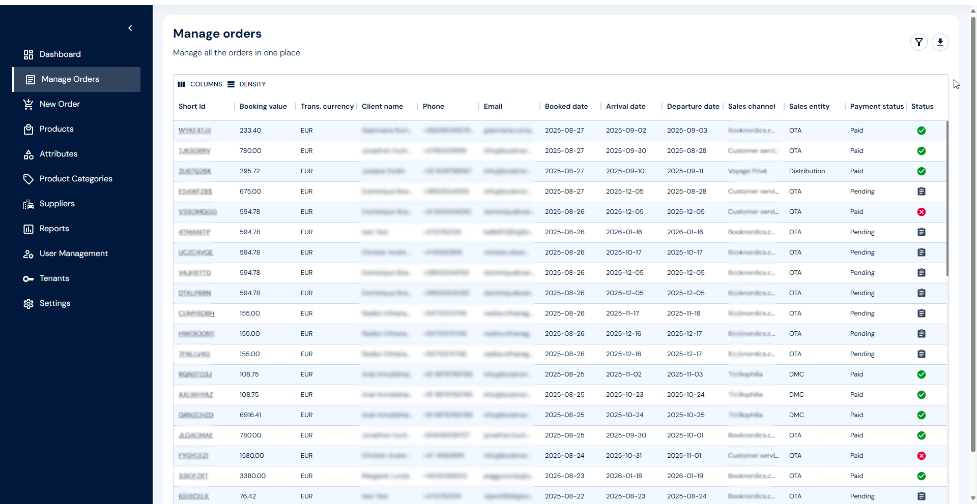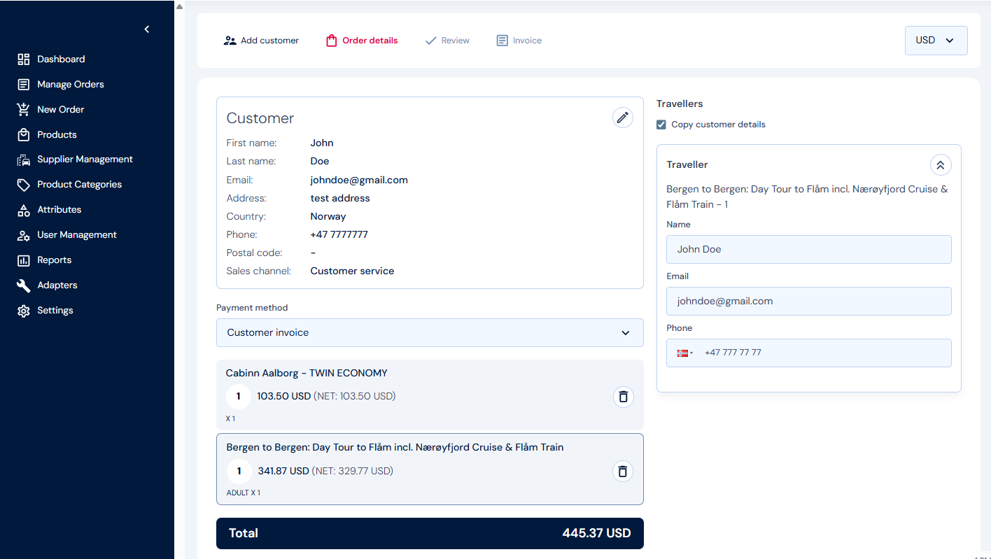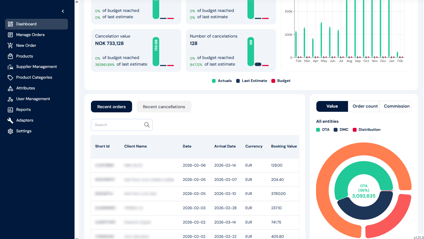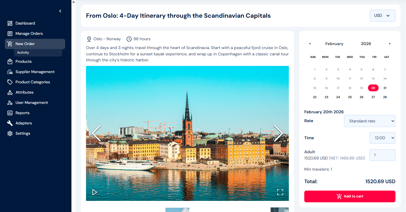Every confirmed booking is managed as a central order within Adventure Hub—even though it may span multiple suppliers and systems. The Order Management module supports changes, cancellations, invoice generation, refund rules, and more.