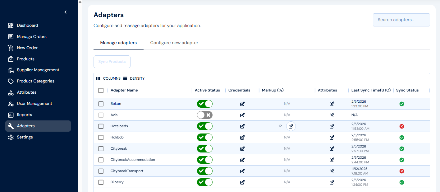 Adventure Hub uses adapters to communicate with third-party reservation systems (like Bokun, CityBreak, FareHarbor, etc.). These adapters normalize availability, product data, booking logic, and payments—so that your platform speaks one language, even if your suppliers don’t.